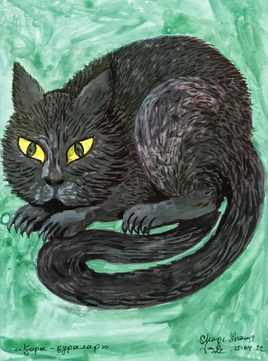 Среди персонажей есть мгновенно узнаваемые. Скажем, общетюркский Синий Волк. Или птица-дракон Зилант, украшающая флаг и герб Казани. Или Сазаган – весенний дракон молний из ногайских степей. Но много таких, про кого лично я услышал впервые. Например, кора-кура – злобный демон из турецкого фольклора, который в виде черной кошки садится на грудь спящему человеку и отнимает дыхание.