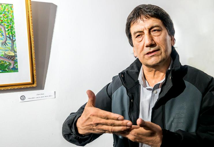 Художник Чори Шамс на выставке. Фото Андрея Кудряшова/"Фергана"